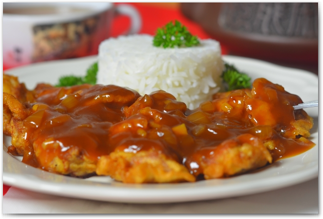 Свинина в кисло-сладком соусе, возможно самое известное и популярное блюдо китайских ресторанов. Это блюдо я чаще всего заказывала в одном очень милом и уютном китайском ресторанчике в Питере, но спустя какое-то время ресторан закрыли, и я решила приготовить свинину в кисло-сладком соусе дома. Ничего сложно в приготовлении не оказалось. Надо лишь заранее приготовить кисло-сладкий соус, остальное проще простого — обжариваем кусочки свинины в кляре, кляр на пиве получается довольно хрустящий и ароматный, и поливаем всё горячим соусом.