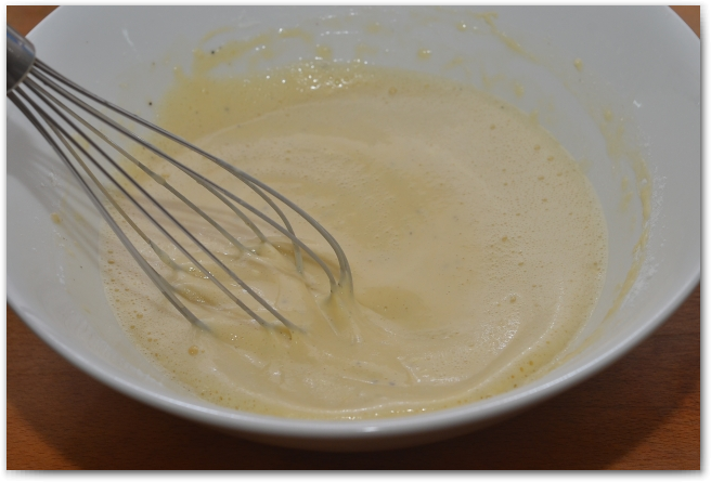 1. Сначала делаем кляр. Смешиваем яйцо с пивом, солим и перчим.