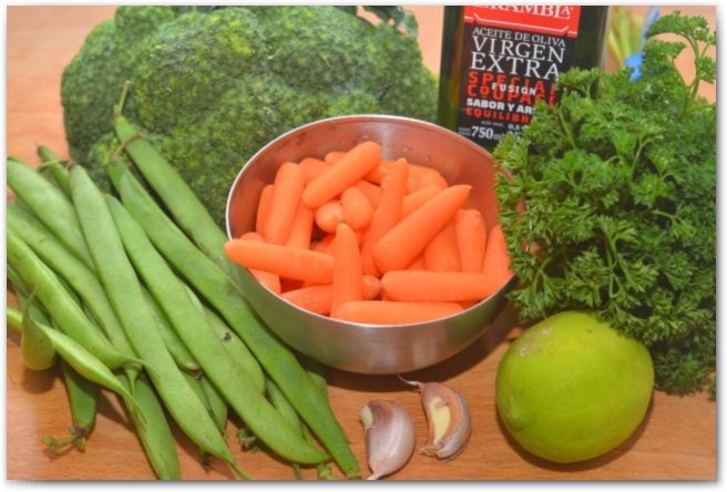 1. Ставим кипятиться 2 кастрюли с водой: одна для брокколи, другая для моркови и фасоли. Моем все овощи и зелень. Разбираем брокколи на соцветия.