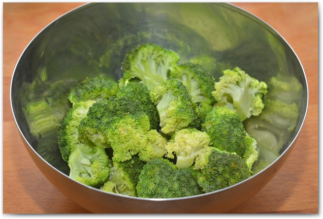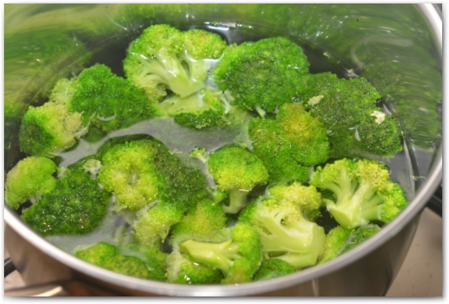 3. Одновреммено варим брокколи, опускаем в кипящую подсоленную воду и варим примерно 7-10 минут, до готовности.