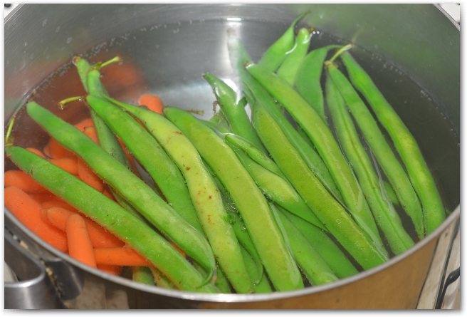 2. В кипящую воду кидаем фасоль и морковь. Варим около 10ти минут, до готовности.