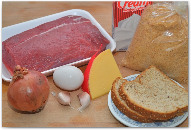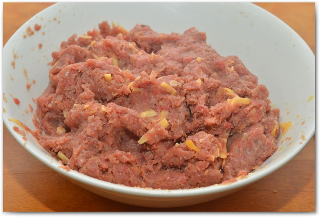 2. Пока хлеб пропитывается, перемалываем в мясорубке мясо, лук и чеснок. Туда же отправляем хорошо пропитавшийся сливками хлеб. Солим и перчим, хорошо перемешиваем готовый фарш.