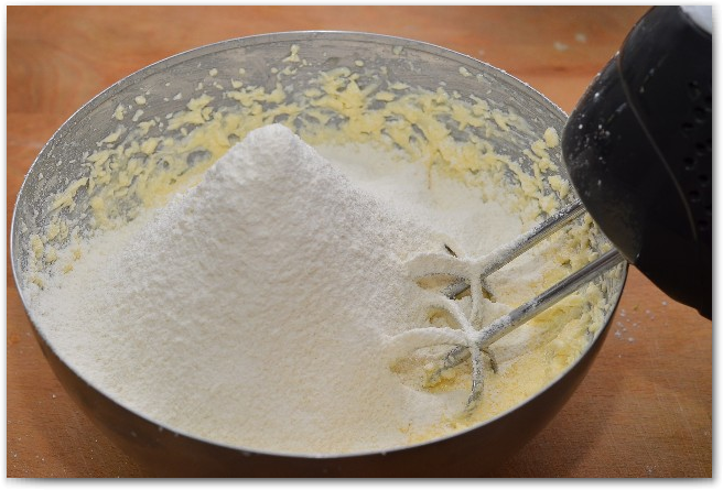 6. Просеиваем муку с разрыхлителем в миску с массой.