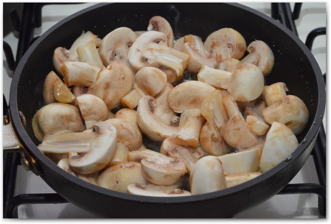 10. В небольшой сковороде растапливаем оставшиеся 30 гр сливочного масла и на сильном огне обжариваем грибы.