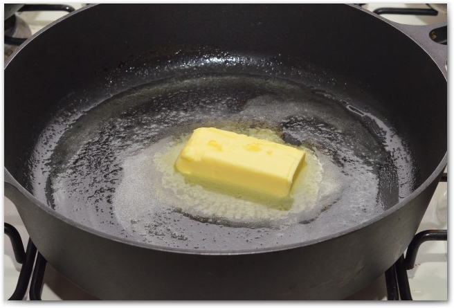 6. В сковороде с высокими краями и толстым дном растапливаем 70 гр сливочного масла.