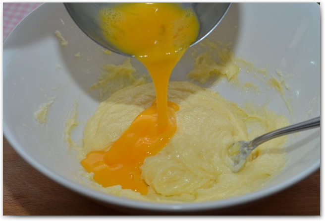 2. В два захода добавляем слегка взбитое яйцо. Хорошо взбиваем.