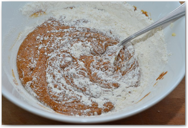6. В два захода добавляем мучную смесь к масляной.