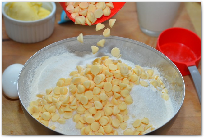 1 + 1/3 чашки рубленного белого шоколада или шоколадных чипсов,
