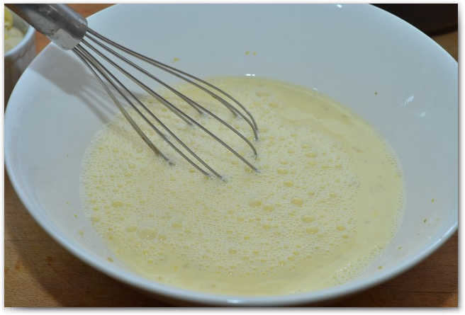 4. Взбиваем молоко,яйца и лимонную цедру в отдельной миске.