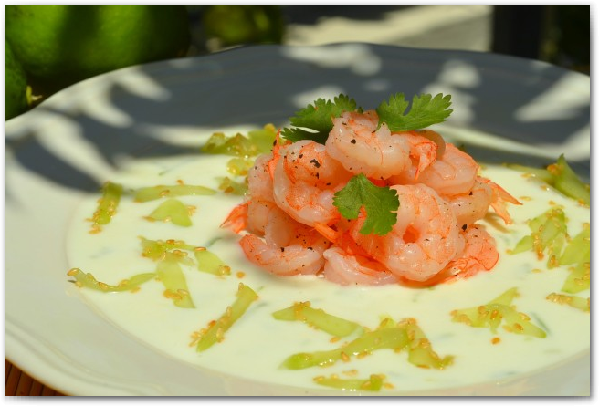 Рецепт из книги Le Cordon bleu «Summer». Лёгкий и действительно очень летний салат-аперитив с тонким и изысканным вкусом. Гениальность этого салата в простоте приготовления и великолепном лаймовом соусе, который дарит салату яркий и летний вкус.