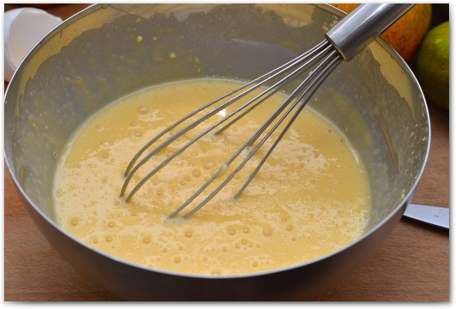 1. Просеиваем муку, добавляем сахар, соль и яйца. Хорошо взбиваем до однородности. Яйца, молоко и сливки должны быть комнатной температуы.