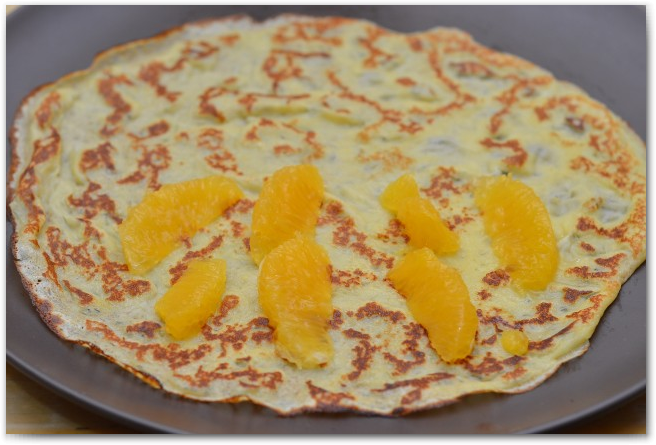 10. Далее раскладываем апельсновые дольки по блинчикам, количество начинки регулируйте на свой вкус, мне нравится когда много!