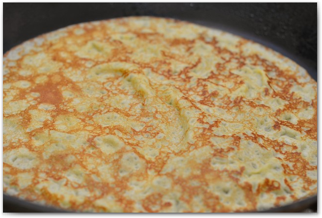 8. Обжариваем блинчики с двух сторон, со второй стороны буквально несколько секунд, чтобы блин не стал жесткий.