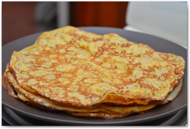 9. Из этого количества теста у меня получилось 10 блинчиков, пекла их несколько раз, если брать не полную чашечку теста, то блинчики получаются более тонкие и 14 штук. Мне больше понравились более плотные.