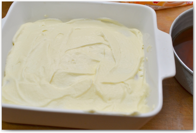 10. Мысленно делим крем на 3 части, первая часть должна быть самая маленькая, ею и смазываем дно формы.