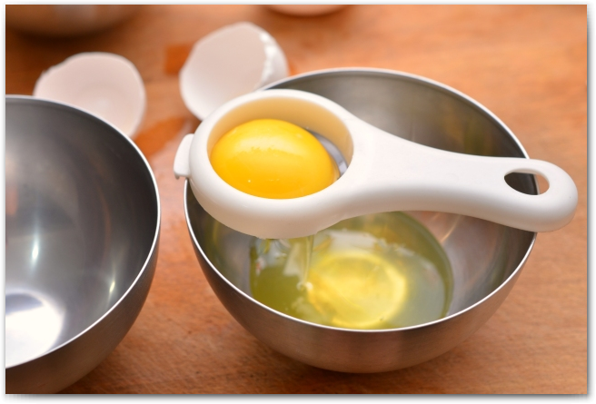 3. Тщательно моем яйца, так как вся опасность от яиц лежит на их поверхности. Отделяем желтки от белков. Желтки прячем в холодильник.