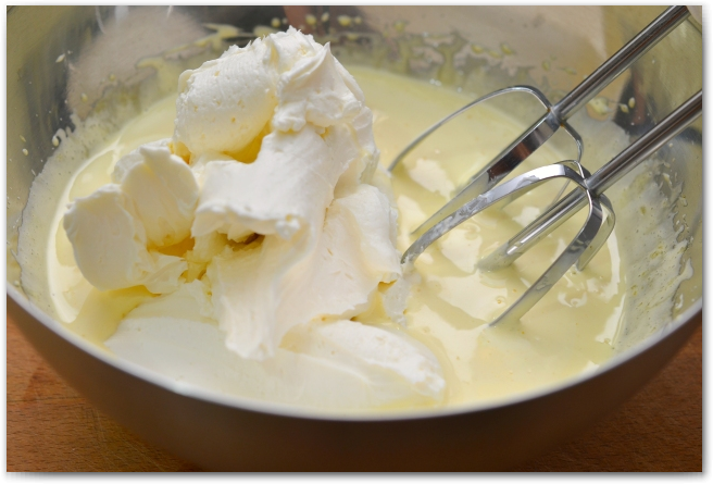 6. Добавляем сыр к желткам. Ни в коем случае не используйте сыр low-fat, у него совсем другая консистенция. Используем обычный regular.