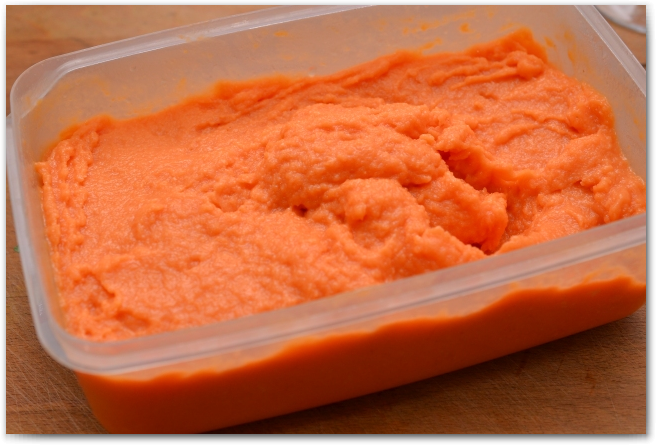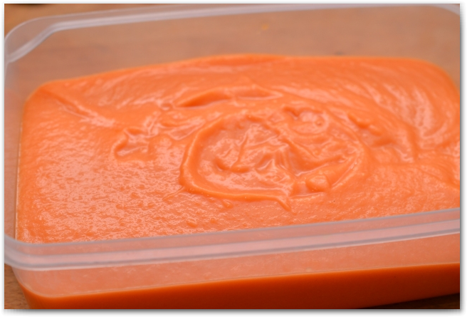 4. Достаём подмёрзший сорбе и ещё раз взбиваем в блендере. Перекладываем снова всё в контейнер и убираем в морозильную камеру на ночь. Можно взбить сорбе не 1 раз, а ещё пару раз, каждые 2-3 часа. Я обычно взбиваю 2 раза.