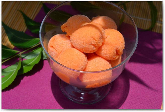 В этом рецепте готовим сорбе из пюре папайи, которую, в свою очередь, легко заменить на дыню, арбуз, абрикосы, персики, в общем, подойдут любые сезонные фрукты или ягоды!