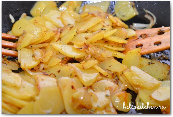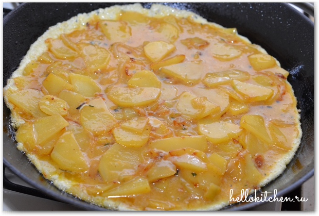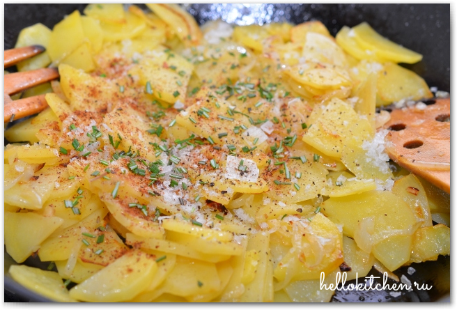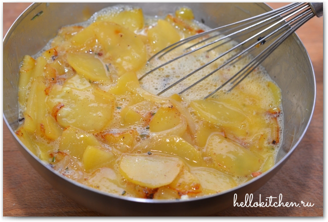 11. Хорошо перемешиваем и доводим картофель до готовности. Ах! Какой вкусный аромат дали специи и розмарин! Такой картофель будет вкусным и сам по себе, как гарнир. Но мы готовим тортилью!