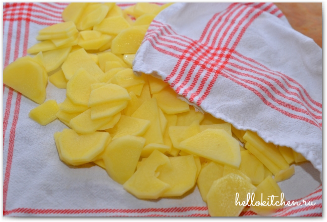 4. Обсушиваем ломтики картофеля сухим полотенцем.