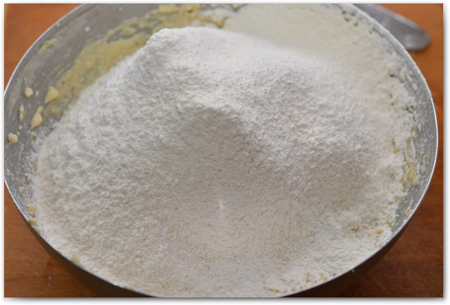 10. Просеиваем сухие ингредиенты в маслянно-творожную смесь.