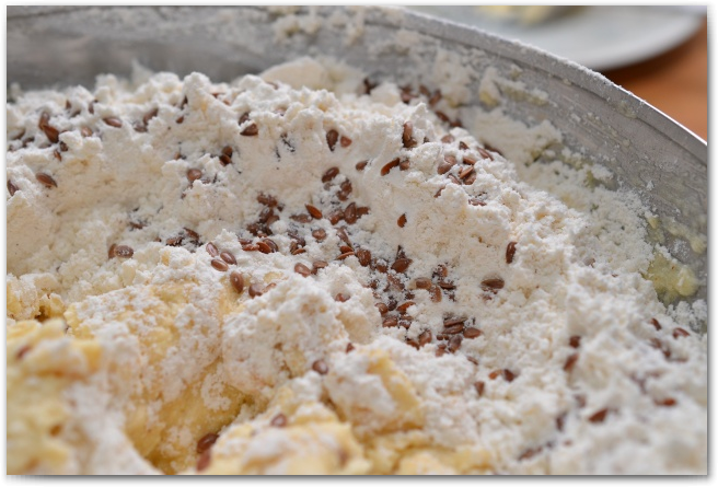 11. Вместе с мукой добавляем семя льна, если есть.