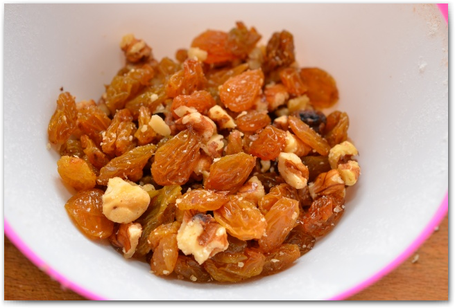 13. Смешиваем вместе изюм и орехи.