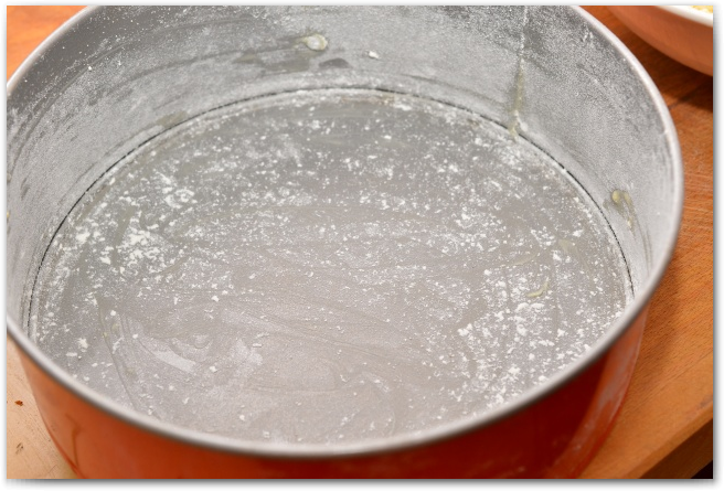 16. Смазываем разъемную форму диаметром 22 см сливочым маслом, присыпаем мукой.
