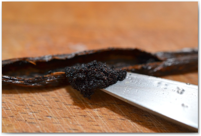 8. Острым ножом разрезаем стручок ванили вдоль. Вынимаем семена. Добавляем в тесто и хорошо перемешиваем. Если у вас ванилин, этот пункт пропускаем, и добавляем ванилин к сухим ингредиентам.