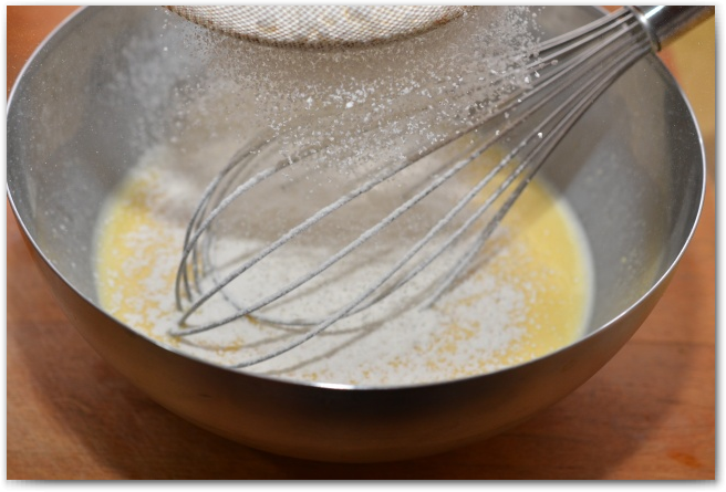 5. Просеиваем муку в яичную смесь. Хорошо перемешиваем.
