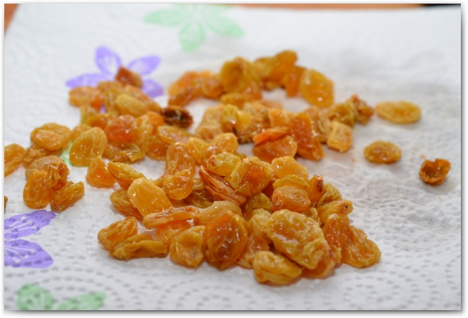 6. Сливаем воду с изюма, и обсушиваем его на бумажном полотенце.
