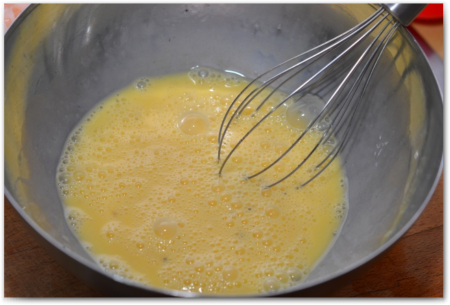 1. Венчиком взбиваем яйца и молоко, солим и перчим; отставляем в сторону.