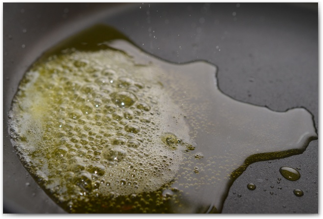 4. В сковороде на среднем огне растапливаем сливочное масло в оливковом.