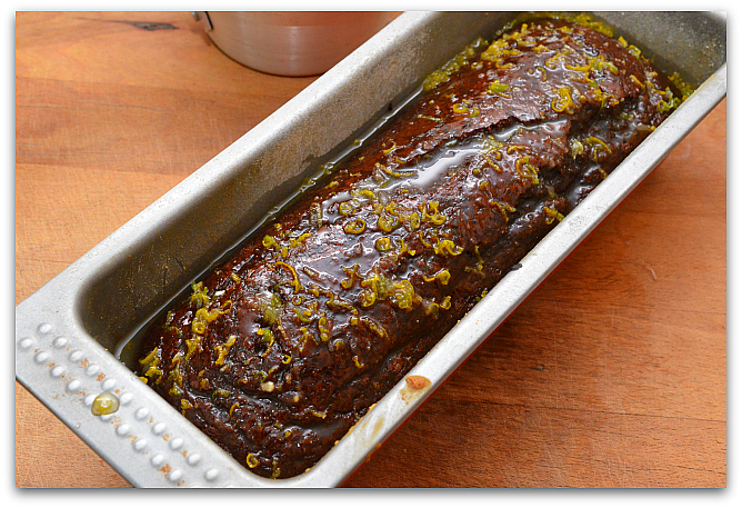 10. Заливаем ещё горячий кекс цитрусовой глазурью и даём кексу полностью остыть.