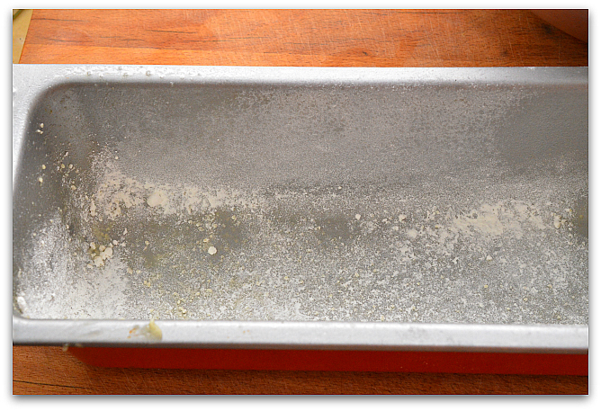 6. Сбрызгиваем форму растительным маслом и обсыпаем мукой. Заливаем тесто в форму и слегка постучим ею об стол, чтобы на поверхности теста появились воздушные пузырьки. Форму можно использовать как для кекса, так и плоскую квадратную с высоким бортом. Отправляем тесто в духовку на 35 минут.