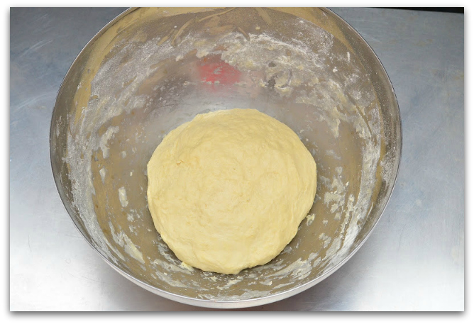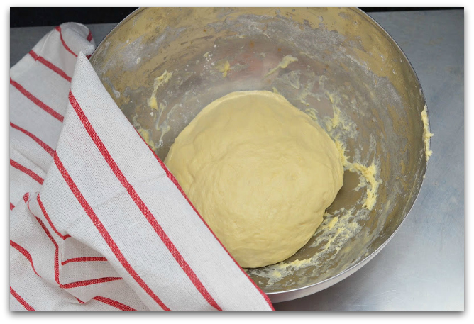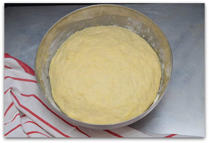 15. Скатываем тесто в шар и ставим его ещё на 1 час в тёплое место. А пока можно заняться начинкой.