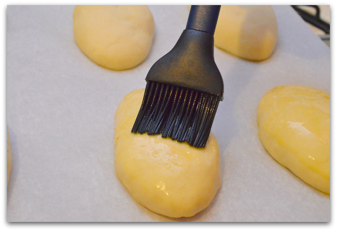 Перед выпечкой я смешиваю желток и ложку сливок или молока для смазывания, тогда пирожки получаются более глянцевые. Чтобы пирожки не горели, нужно смазывать аккуратно, чтобы яйцо не пролилось на противень. После выпечки ничем не смазывала никогда.
