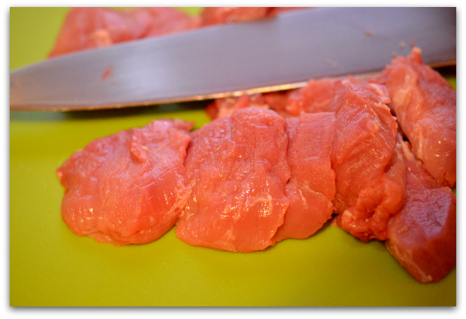 1. Нарезаем мясо толщиной примерно 1,5 см.