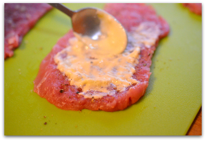5. Тонким слоем смазываем мясо получившимся соусом.