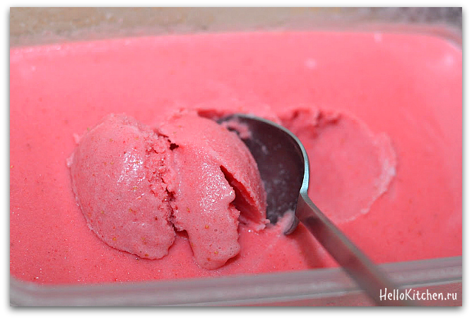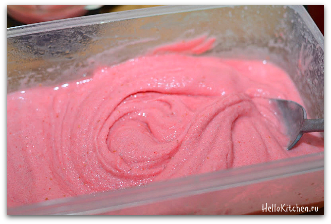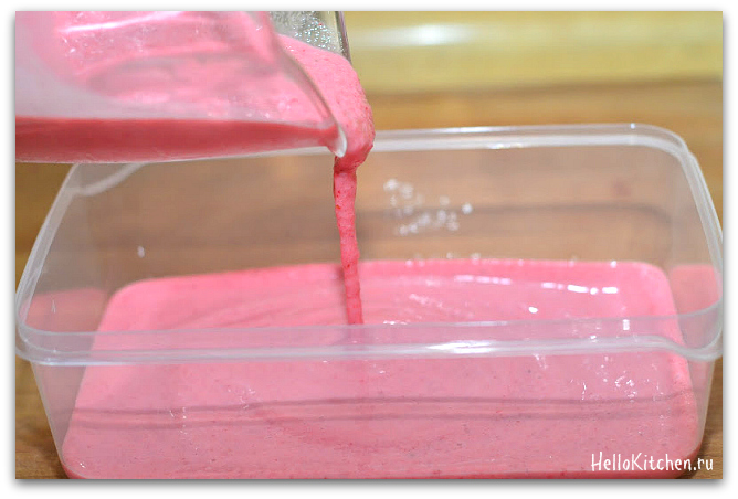 6. Достаём смесь, она должна уже совсем замерзнуть и быть красивой консистенции.