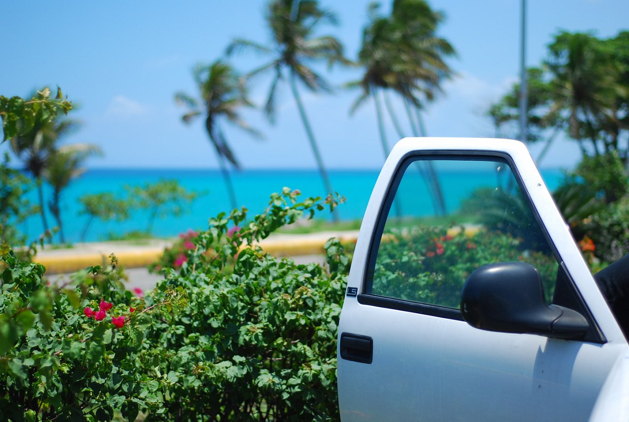1. Практически весь путь до пляжа лежит вдоль моря, можно ехать и любоваться все 40 минут великолепным, совершенно безумно красивым лазурным цветом Карибского моря.