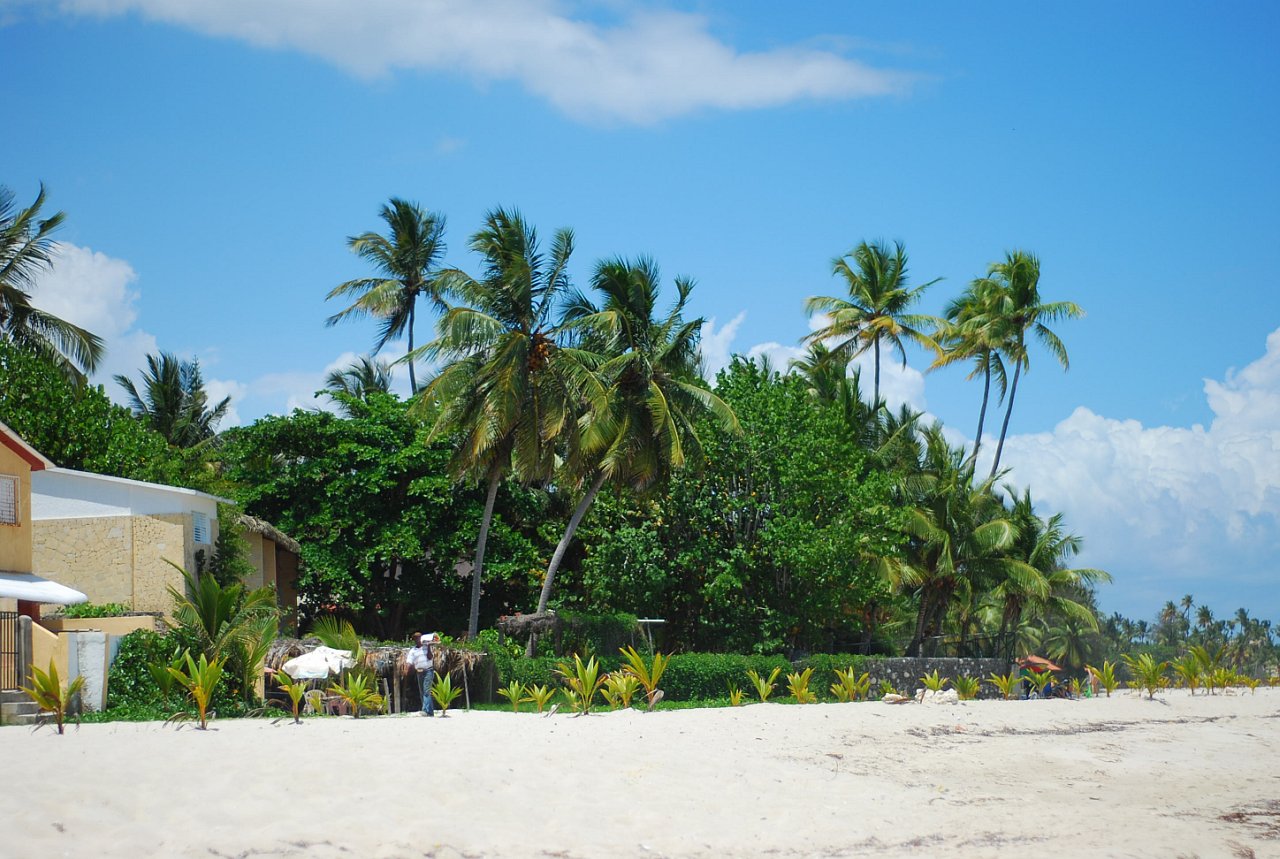 Если выехать из Санто Доминго, то буквально через 10 минут мы выезжаем на трассу, ведущую на мой любимый пляж Хуан Долио, до которого ехать совсем недолго. Всего 40 минут и вы на безумно красивом пляже с белоснежным песком, высокими пальмами и волшебно-красивым морем. Хуан Долио (Juan Dolio) расположен на юго-востоке острова, на полпути от Санто-Доминго в Ла Романа. Это небольшой курортный поселок с трех- и четырехзвездочными отелями, большинство из которых расположено на первой линии. Надо отметить, что туристов в Хуан Долио очень и очень мало, этот городок не идёт ни в какое сравнение с Пунта Каной, где яблоку упасть негде. Люблю Хуан Долио именно за великолепные пустынные пляжи, уютные апарт-отели, небольшие пиццерии и ресторанчики на самом берегу моря. Поездив по всему острову, пришла к выводу, что Хуан Долио это идеальное место для отдыха, но это лично моё мнение.