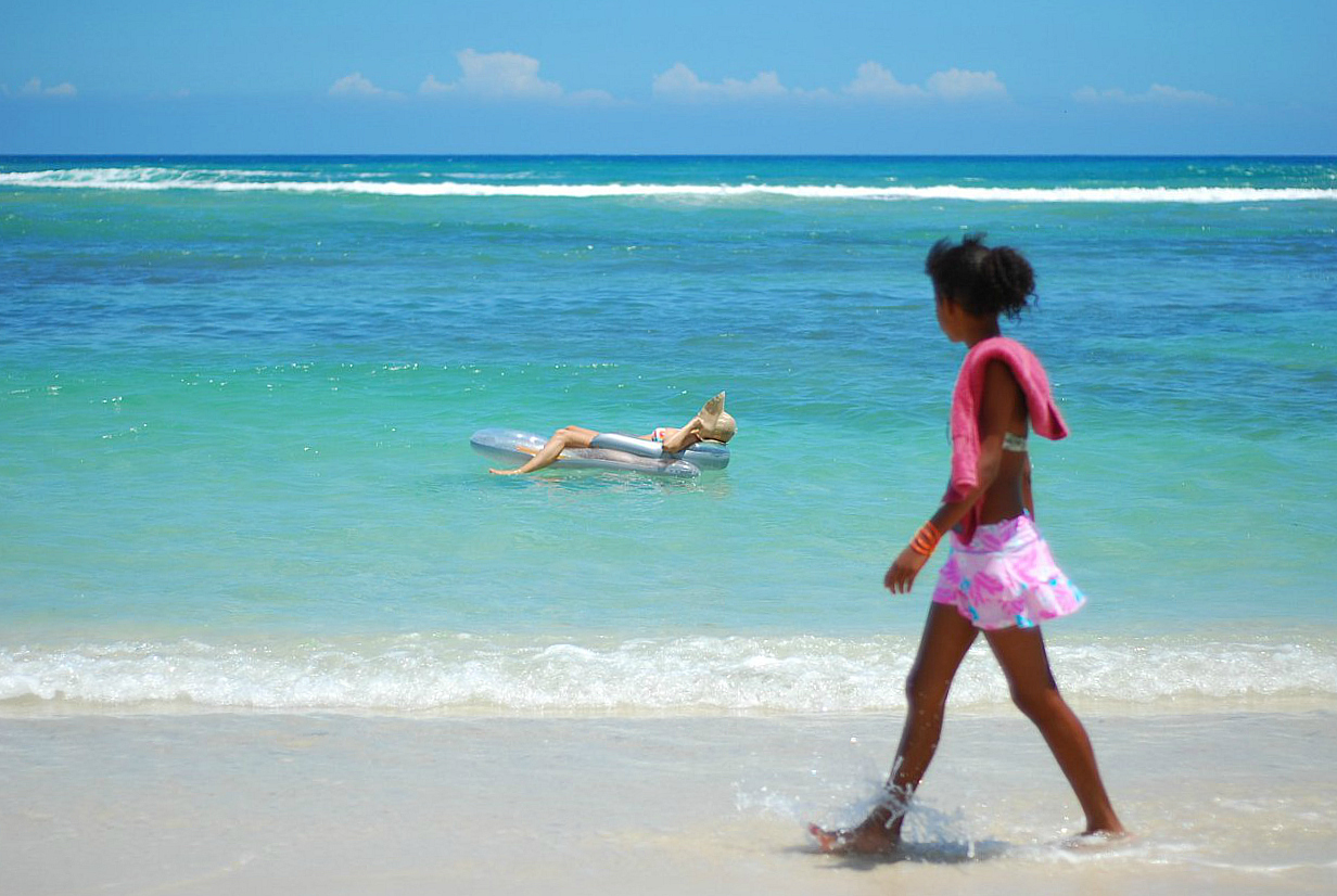 12. Поплавали, можно и позагорать. Пляж практически пустой, но только в будни; в выходной день ехать сюда не советую. Благодаря своему близкому расположению к столице, весь пляж будет забит местным народом, с большими семьями, тучами детей, барбекю, ром и конечно, бачата. А сейчас…раз в час кто-нибудь пройдёт, что-нибудь предложит, местную вкусняшку, кокосы-массаж-заплести косы и прочие ненужные услуги. Иногда бывают весьма неожиданные предложения.