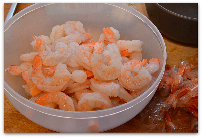 1. Сначала подготовим все ингредиенты. Чистим креветки.
