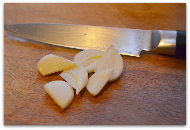 2. Чистим и разрезаем пополам зубчики чеснока.
