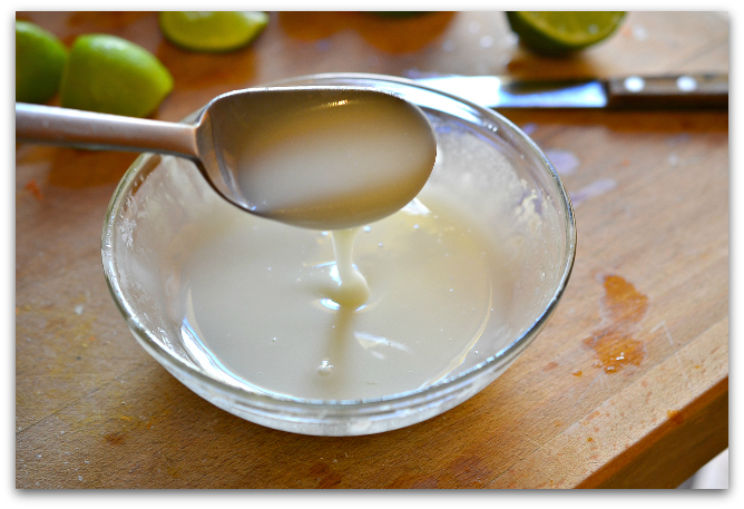 9. Выливаем сок в сахарную пудру и активно размешиваем. Сок наливаем постепенно, чтобы не перелить, нам нужна консистенция густой сметаны.