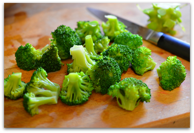 3. На среднем огне нагреваем сковороду. А пока она нагревается разбираем брокколи на небольшие соцветия.