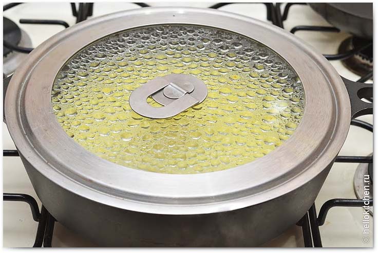 9. Убавляем огонь на самый маленький, накрываем крышкой. Не перемешиваем пока что.