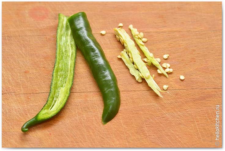 3. Разрезаем перчик и удаляем семена, чтобы перец не был сильно острый.